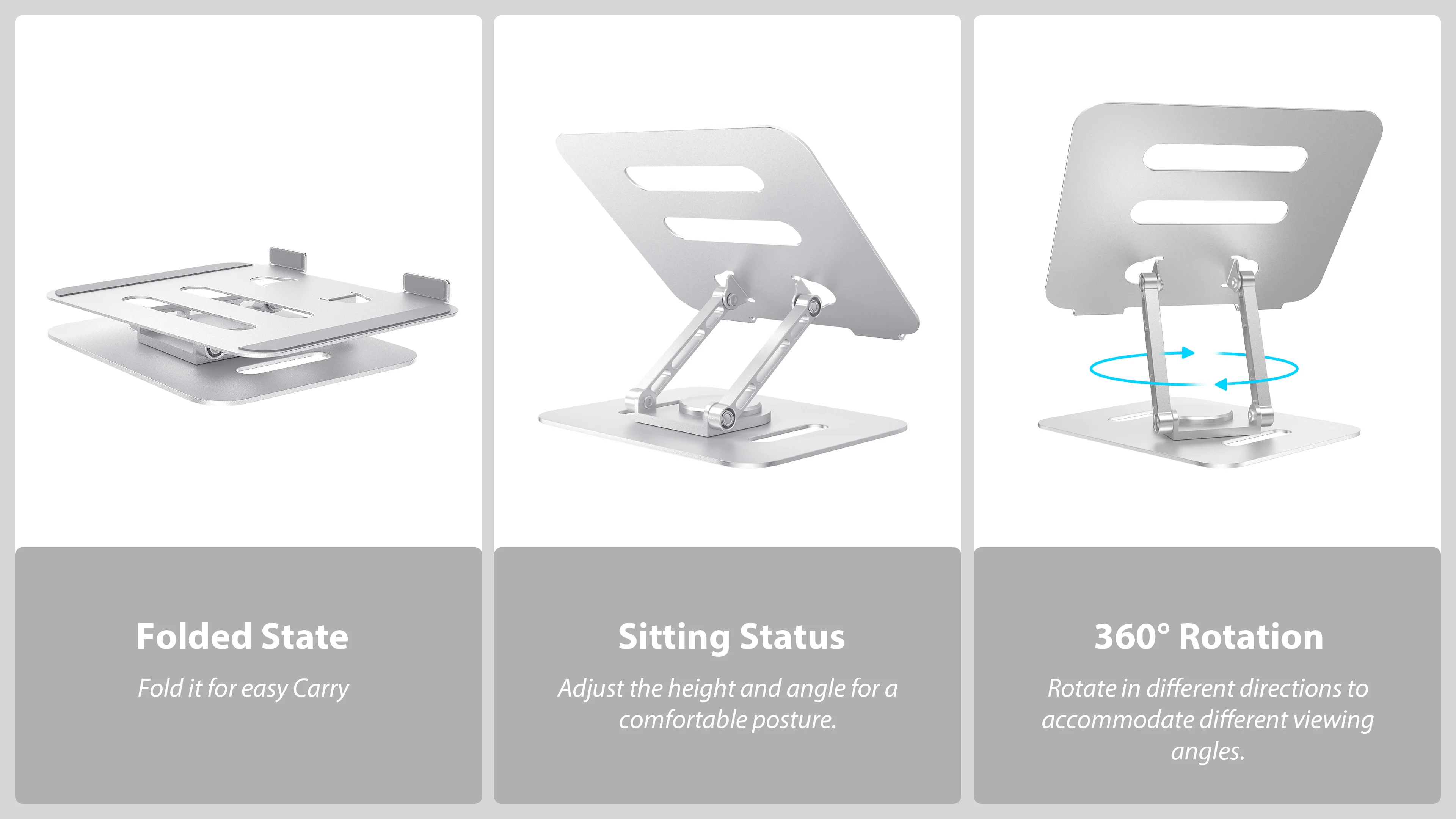 UPERFECT Adjustable Computer Stand with 360 Rotating Base Folding Laptop Riser for Desk Notebook MacBook Monitor up to 19inch