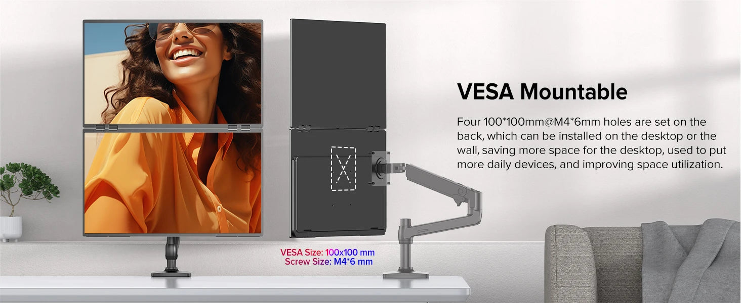 The ergonomic design of stacking 23.8 inch dual screens vertically is an innovative display layout that makes full use of the vertical space by stacking two screens vertically to provide users with a wider field of view and a more efficient work experience.
